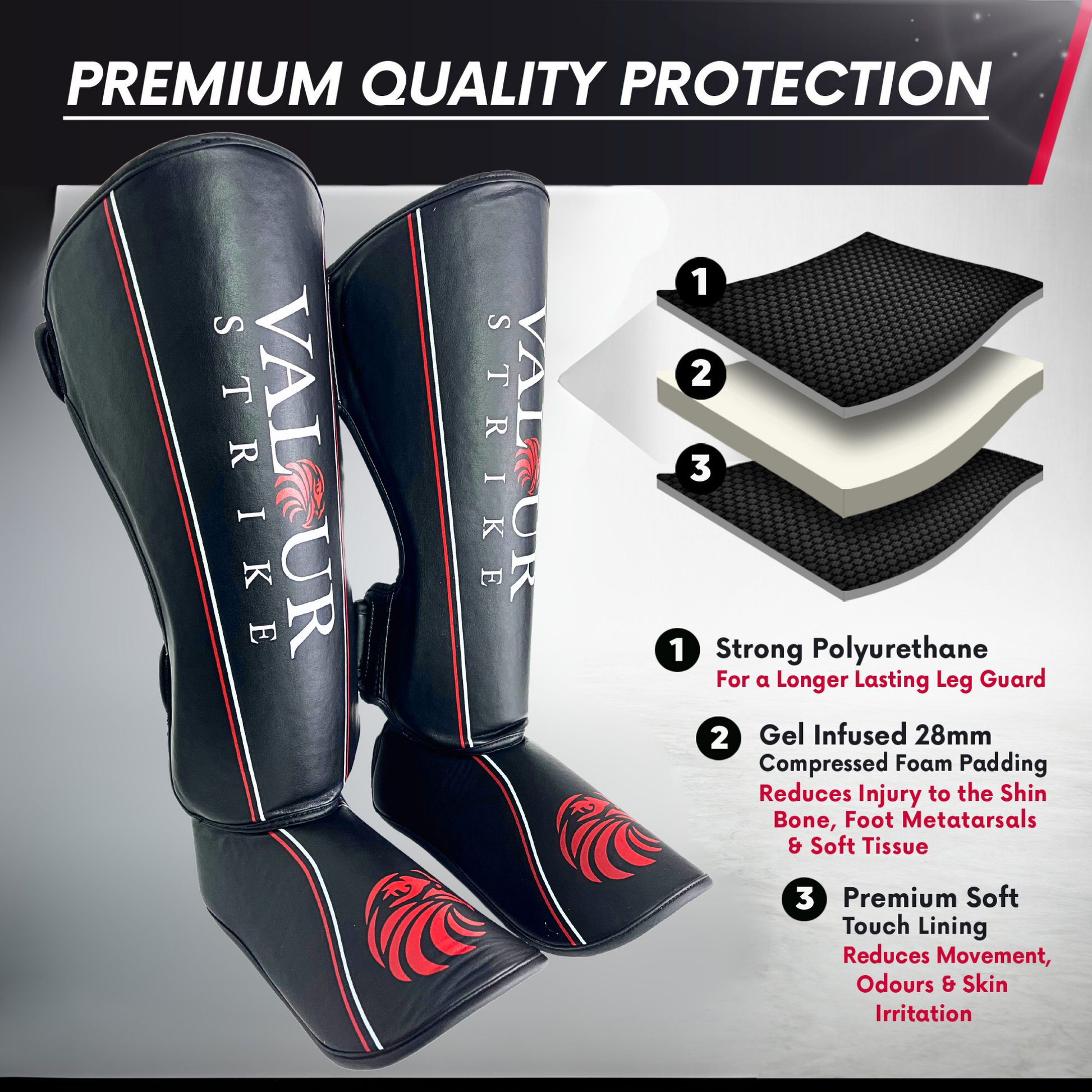 Protect your legs during combat sports training and sparring with Valour Strike's...