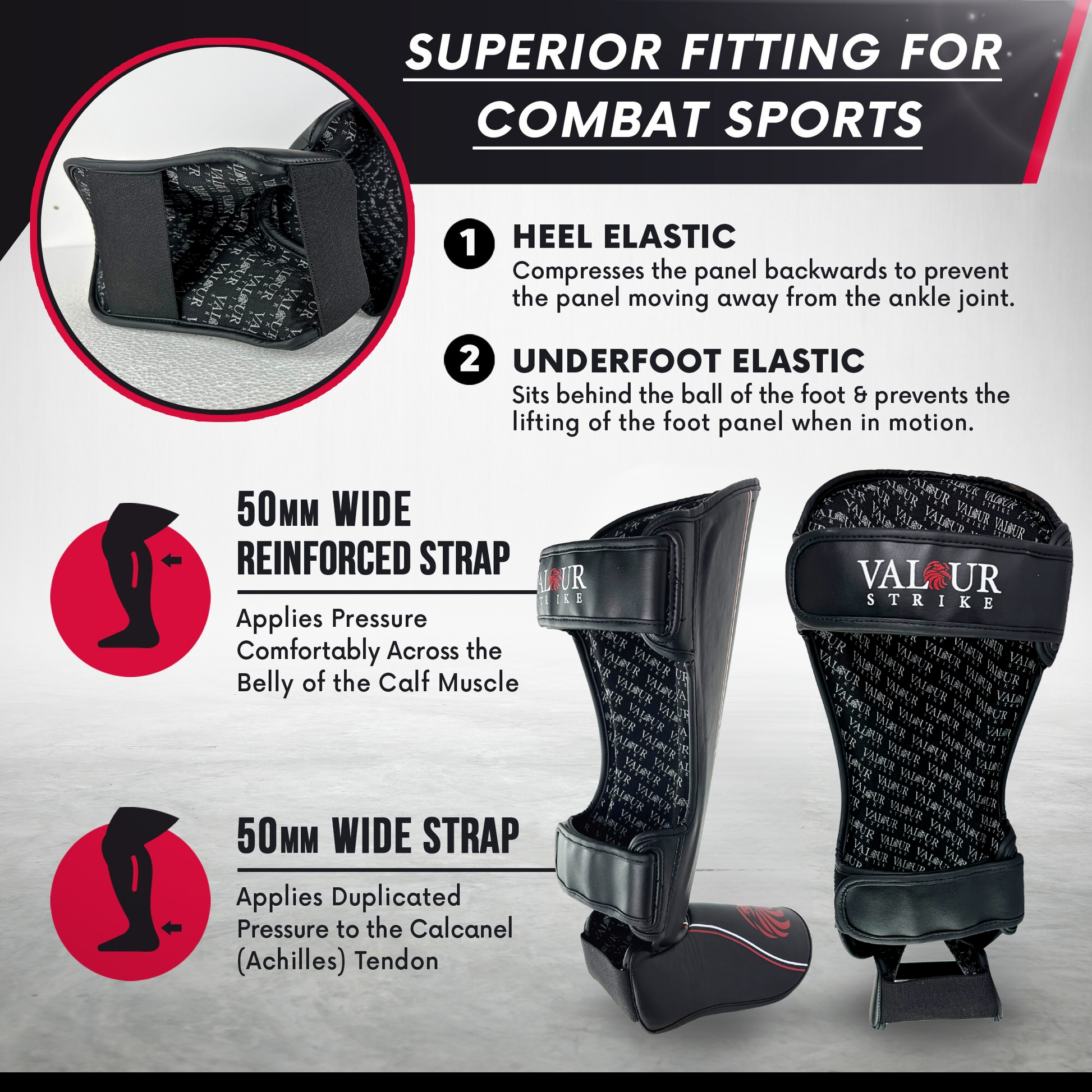 -Tear Resistant PU Material -28mm Compressed Foam Padding reduces risk of injury -Ultra Light Weight -Designed with the athletes mobility in mind -Dual Hook & Loop Rear Straps -Heel & Foot Elasticated Panels -Tried tested & Used by Team VS * Not to be worn with shoes. |