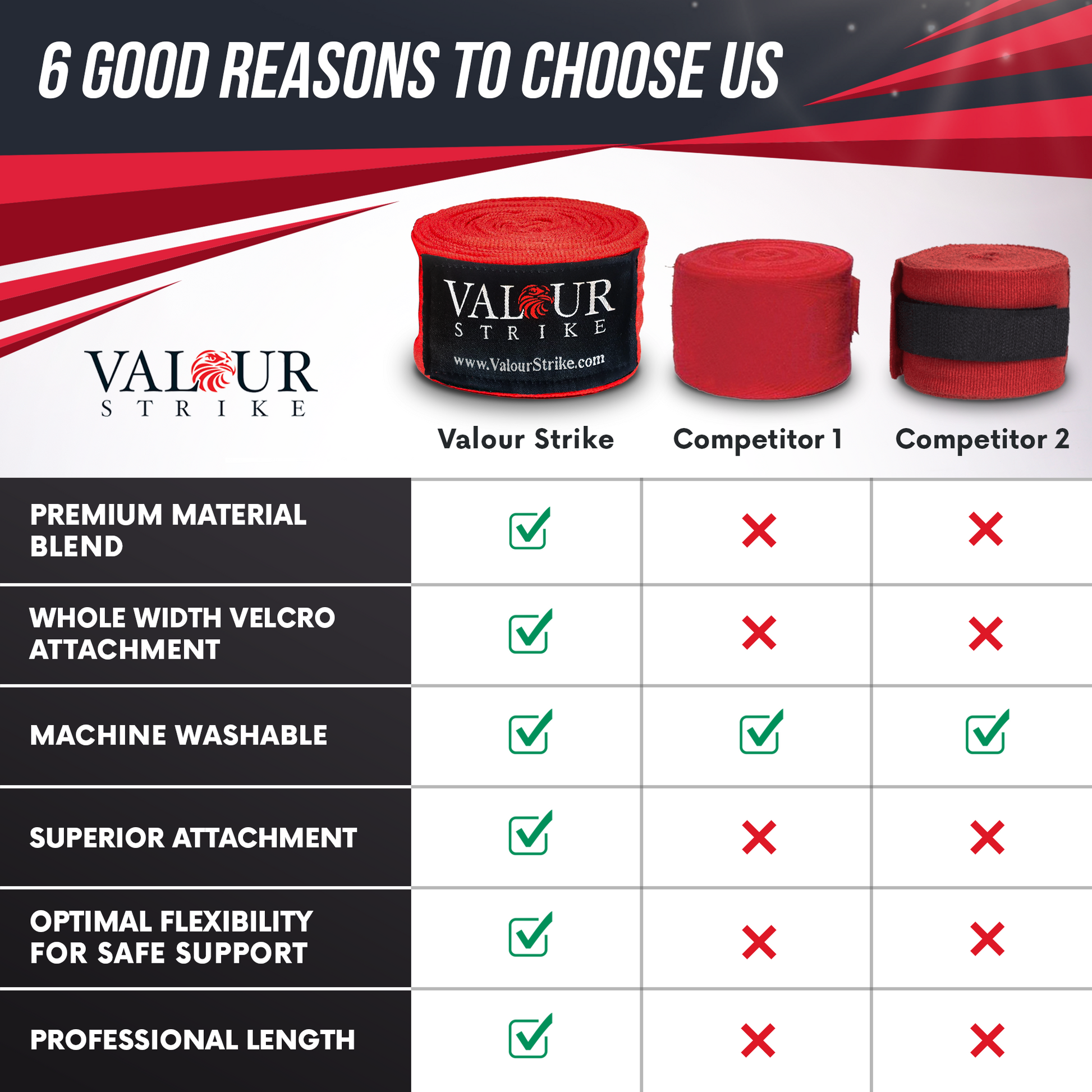 -Optimal Flexy Blend Material (For Support but allows for slight movement) -Pro 4.5m length -Full Wrap Width Attachment Reinforce Thumb Loop -Prevents "Boxer's Fracture" -Reduces Risk of Injury -Machine Washable (wash alone first few times) -Suitable for all sizes (the earlier we learn to wrap the better) * PS There are so many bad hand wraps out there so please be careful. |